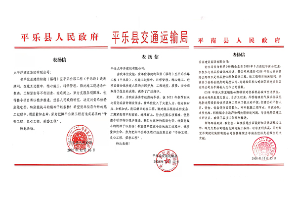 苏商建设第十九集团收到广西平乐县、平南县政府及平乐县交通运输局表扬信