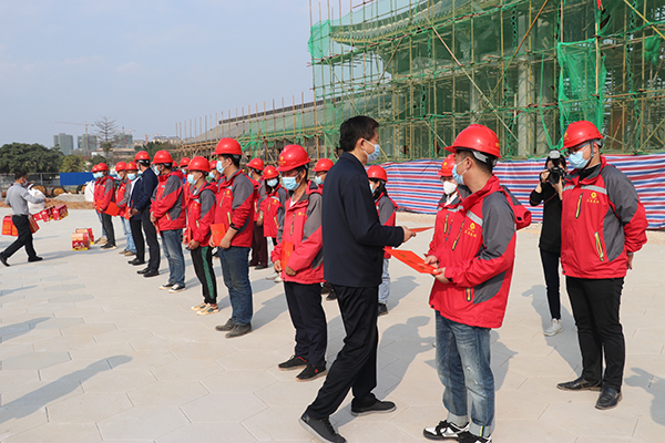 费志荣一行走访了项目现场和重点区域,详细了解项目安全生产和疫情防控工作情况,亲切看望春节在岗的一线建设人员,致以诚挚问候和新春祝福,并送上慰问金、慰问品。