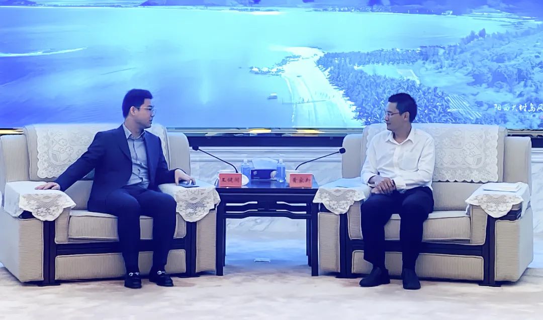 王健闯同广东省阳江市阳西县委副书记、县长黄家新会谈